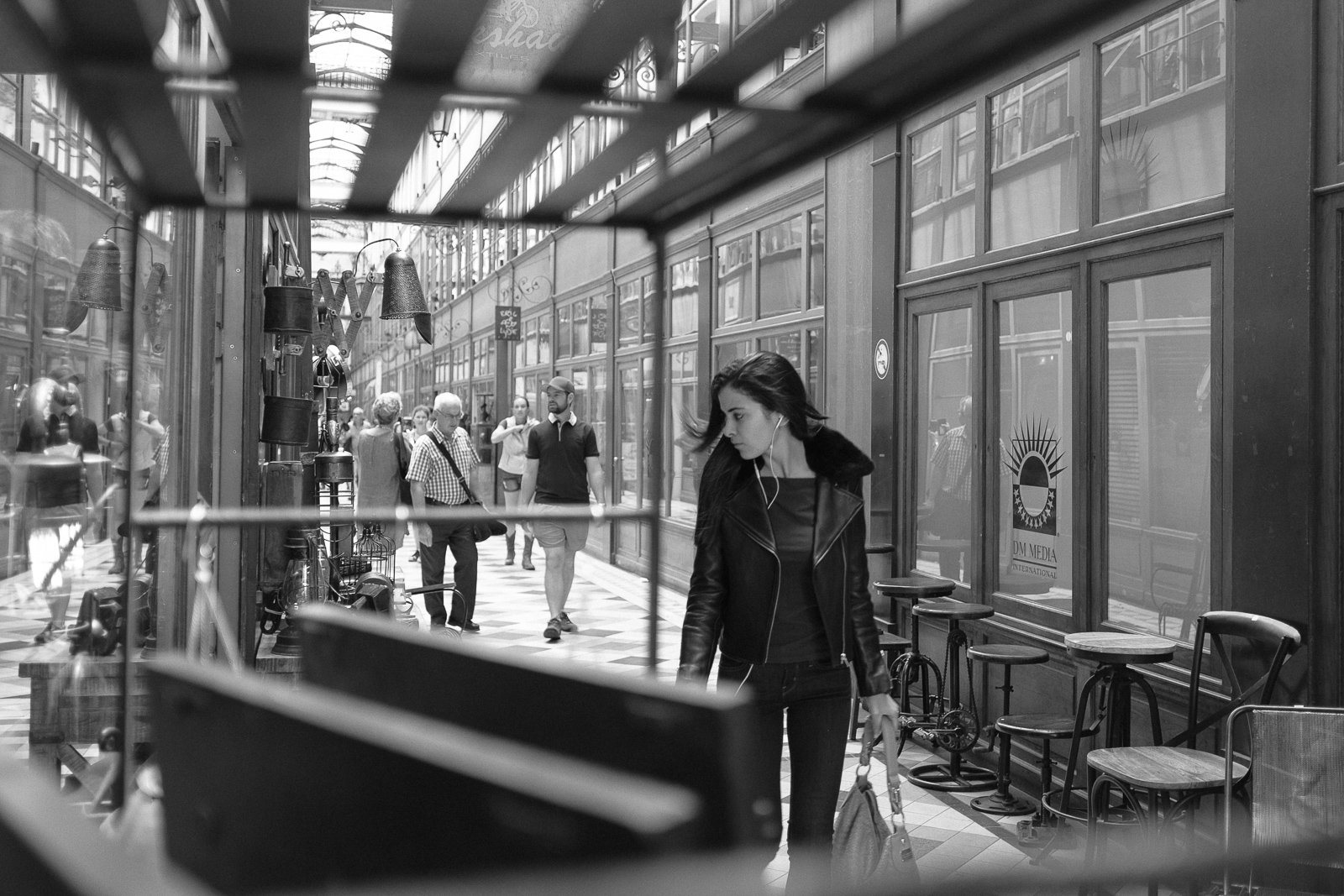 Depuis quelques mois, je ne sais par quelle opération provoquée ou par simple alignement des bonnes planètes, le passage revit. Les boutiques sont maintenant toutes occupées, et les flâneurs affluent. J’y passe régulièrement avec plaisir lorsque je suis dans le quartier et laisse trainer mes Fuji pour récolter quelques images.